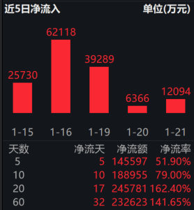 资本市场上,资金持续加码半导体产业相关基金。Wind数据显示,截至2026年1月21日,半导体设备ETF易方达(159558)近5日资金净流入超14亿,近20日资金净流入近25亿。