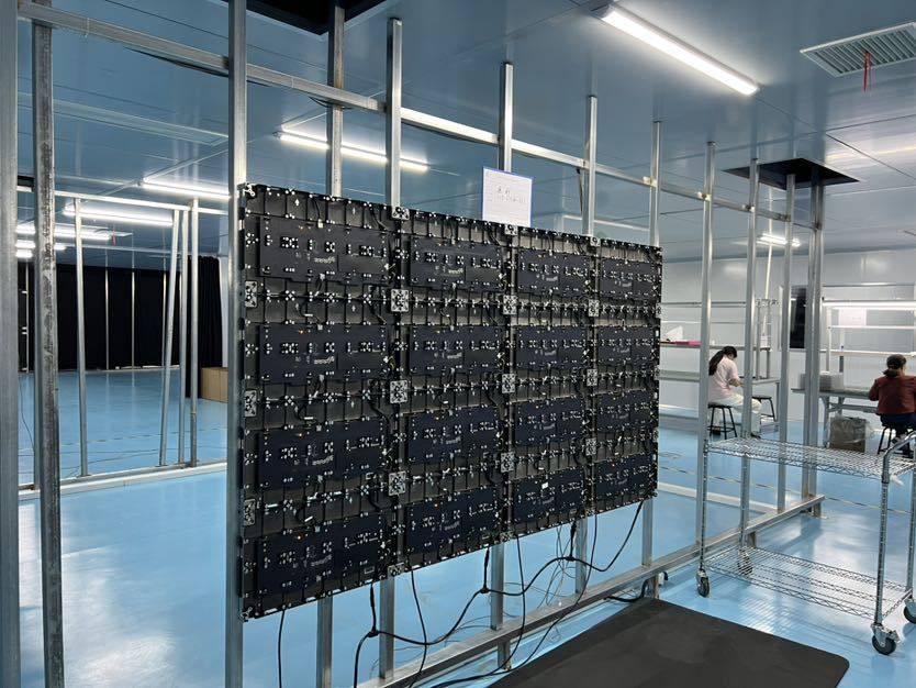 “在这方寸之间,我们集成了超过10万颗微米级MiniLED发光芯片,每一颗都精确定位,实现像素级控光。通过独立驱动和精准调控红、蓝、绿三基色LED,我们实现了超过10亿色的显色能力,画面层次过渡自然,色彩真实饱满。”蔡安华手托模块介绍,整个屏幕由多个标准化模块无缝拼接而成。模块化设计不仅保证了画面整体一致性,也极大方便了安装与后期维护。“MiniLED正快速进入家庭影院、指挥中心、商业展厅、会议系统等场景。目前,全国已有数百家影院将传统银幕升级为MiniLED大屏。它不仅色彩更鲜艳、对比度更高,而且屏体坚固、表面耐刮擦,使用寿命和可靠性显著提升。”