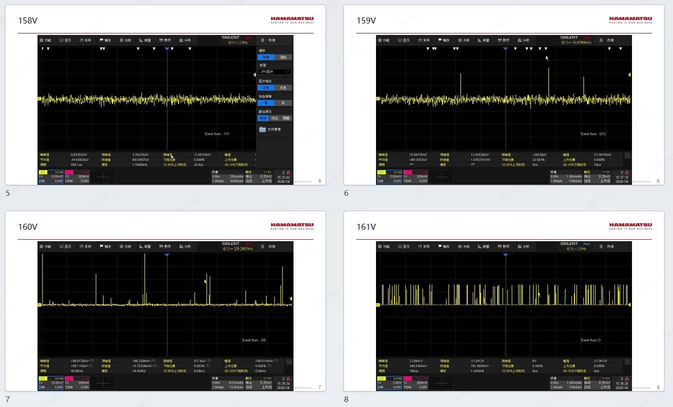 当APD工作在击穿电压附近时,增益急剧上升并且难以获取,我们可以注意到:暗环境下,当APD的反偏电压(158 V~161 V)接近击穿电压值(164 V)时,APD的暗噪声会迅速提升。