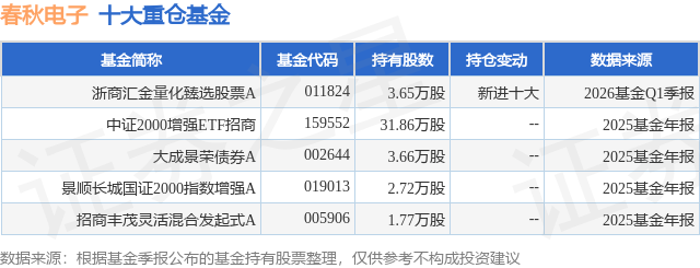 重仓春秋电子的公募基金请见下表: