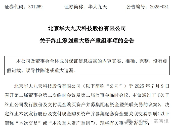 对此,华大九天表示,自筹划该交易以来,公司严格依照相关法律法规,积极联合各方推进各项工作。然而,经过协商谈判,交易各方未能就核心条款达成一致。为切实维护公司及全体股东的利益,经公司审慎研究并与交易各方友好协商,决定终止本次重大资产重组,并授权管理层办理终止相关的各项事宜。
