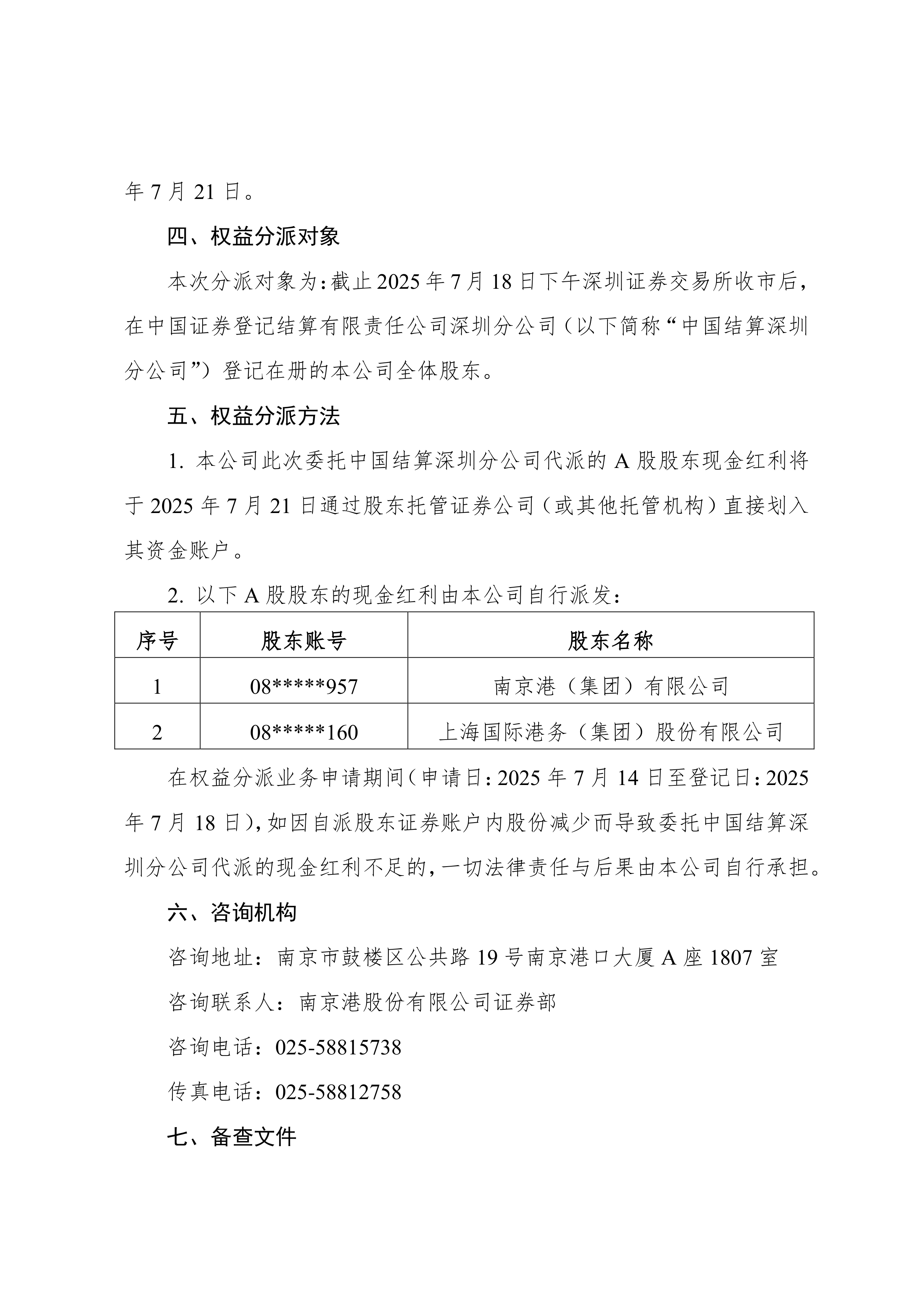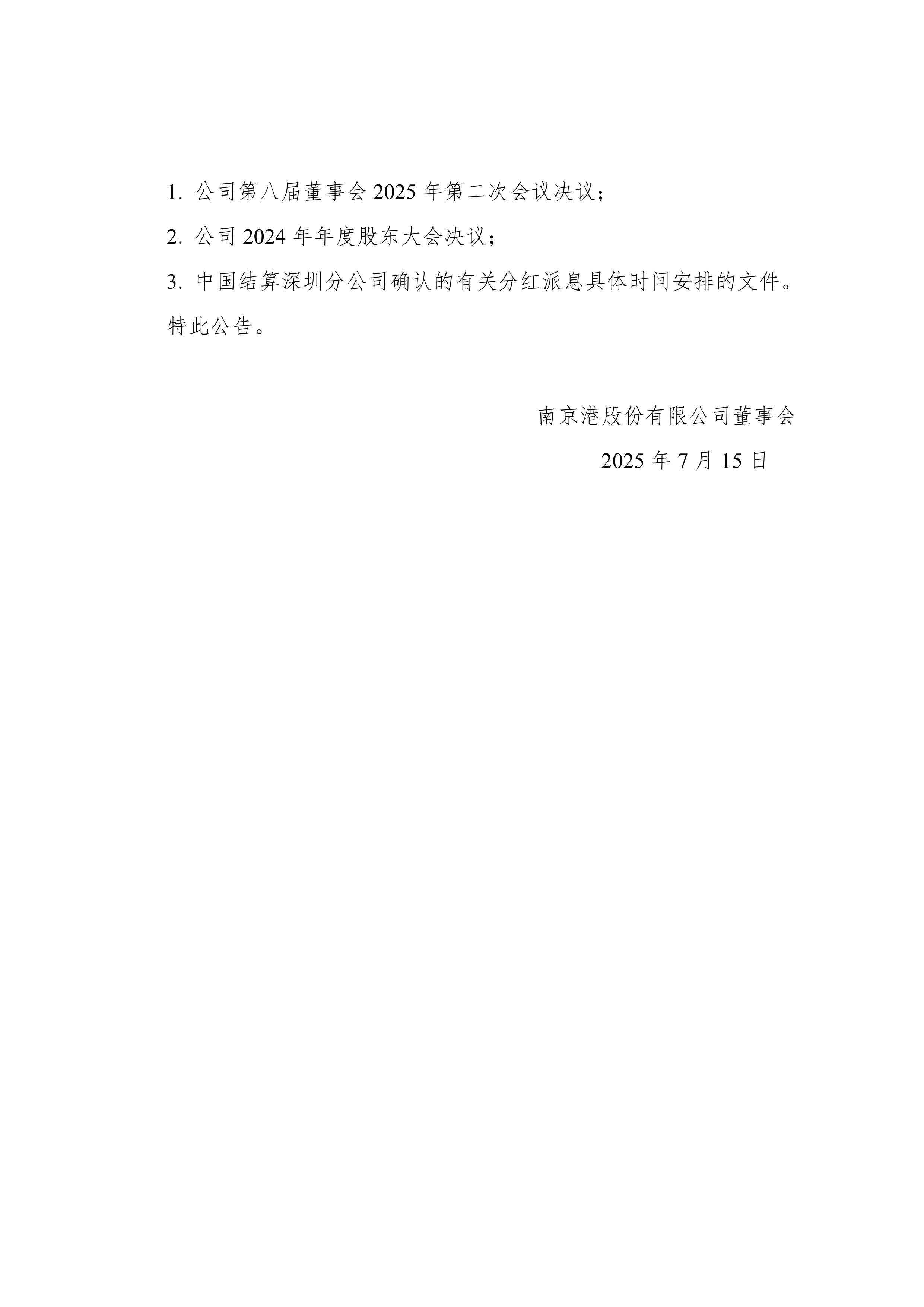基金-南 京 港-南京港股份有限公司2024年年度权益分派实施公告