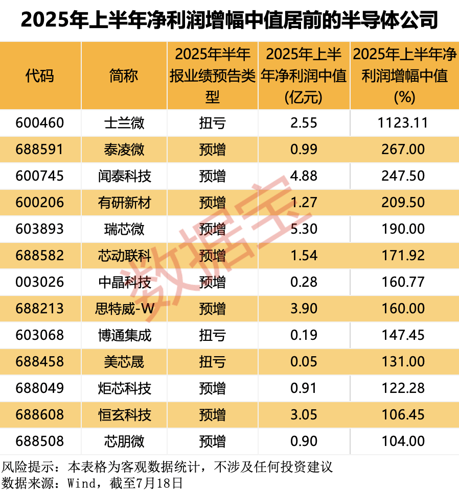 行业景气度持续攀升,半导体公司半年报业绩大范围预喜。