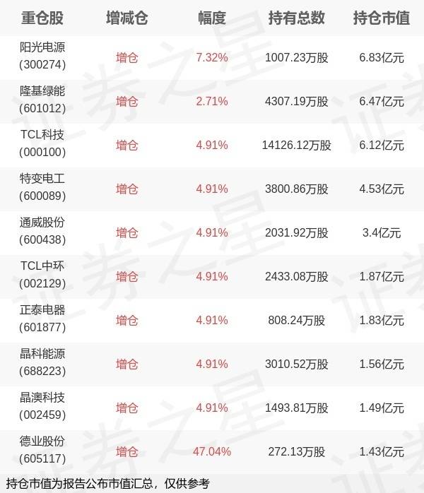 证券之星消息,7月21日天弘基金旗下祁世超管理的天弘中证光伏产业指数型发起式基金公布中报,近1年净值增长率5.22%。并对阳光电源增仓68.69万股,为该基金第一大重仓股;详细数据如下: