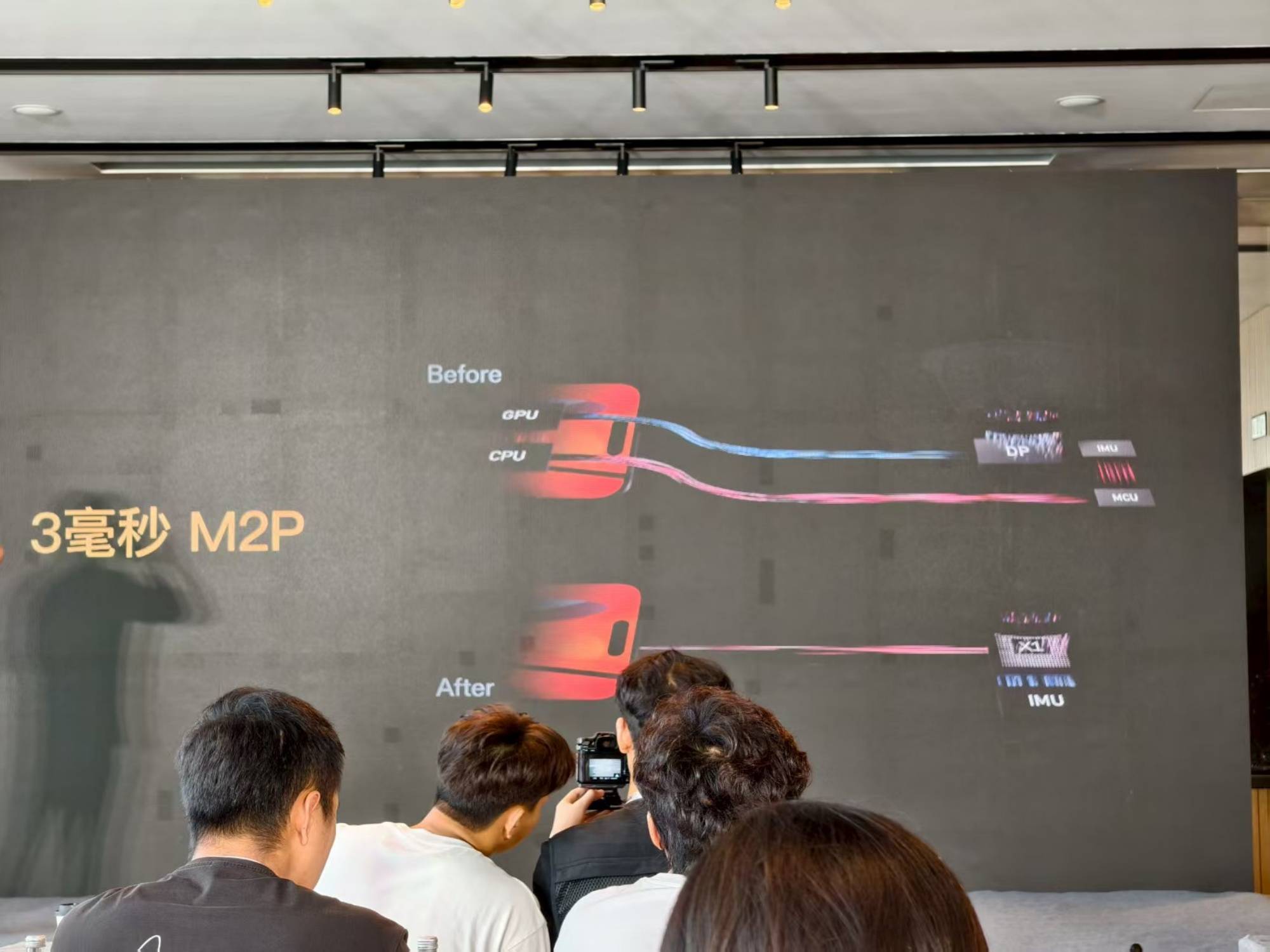 相比依赖通用 AP 的方案,X1 不是单纯意义上的「图像处理器」,更是承载了整个分体式架构的实时协同能力和空间能力,将来自 iPhone、Windows、Steam Deck 等设备的不同信号源,输出为最高 120Hz 的高帧率画面,甚至接入 iPhone、游戏掌机也能做到 3DoF 的体验,同时把延迟压缩到 3 毫秒。