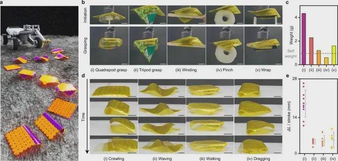 近年来,柔性机器人与可重构机器人凭借其独特的结构特性,已成为机器人研究领域的前沿热点方向。然而,在空间受限、地形复杂以及异形物体操作等实际应用场景中,多数此类机器人仍存在明显的性能局限。其核心问题在于,这些机器人的折叠路径与行为模式大多在出厂时就已被固定,缺乏根据实时任务需求进行“现场再配置” 的能力,这导致它们在应对动态变化的环境时往往显得灵活性不足。针对这一技术瓶颈,研究人员围绕如何在材料层面赋予机器人形态重构、功能切换与智能响应能力,进而拓展其应用边界展开了积极探索。