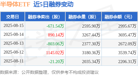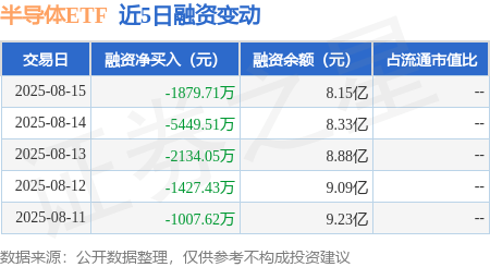 证券之星消息,8月15日,半导体ETF(512480)融资买入1.87亿元,融资偿还2.06亿元,融资净卖出1879.71万元,融资余额8.15亿元。