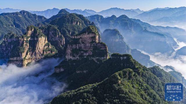 ↑ 9月14日在河北省承德市兴隆县兴隆山景区拍摄的云海景观(无人机照片)。新华社发(刘满仓摄)