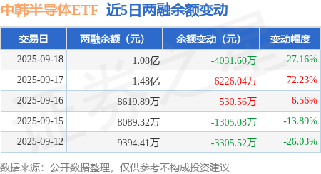 证券之星消息,9月18日,中韩半导体ETF(513310)融资买入6.06亿元,融资偿还6.46亿元,融资净卖出4031.6万元,融资余额1.08亿元。