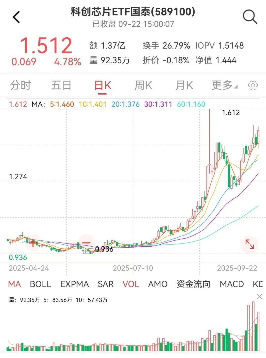 国产算力行情再度爆发。科创芯片ETF国泰(589100)盘中涨超5%。