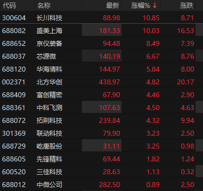 9月24日早盘,半导体设备板块表现强势,截至9时49分,长川科技、盛美上海涨超10%,京仪装备涨逾8%,北方华创涨超4%,盘中股价均创历史新高,芯源微、华海清科、中科飞测等跟涨。