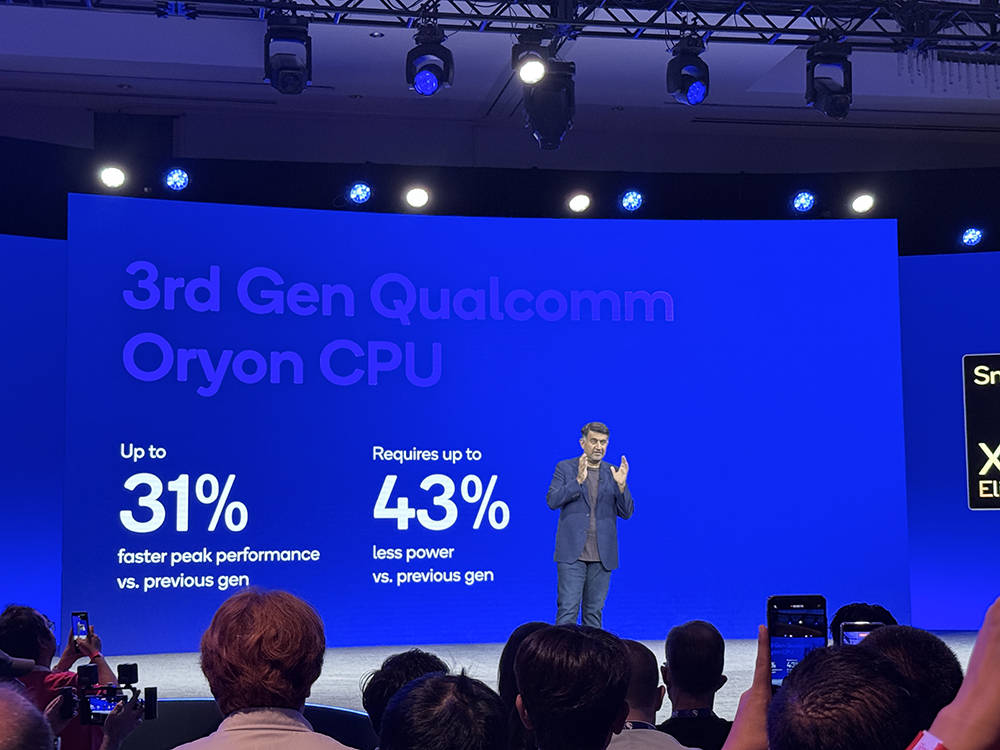 相比上一代,骁龙X2 Elite的第三代Oryon CPU在相同功耗下峰值性能提升31%,达到相同性能所需功耗降低43%。