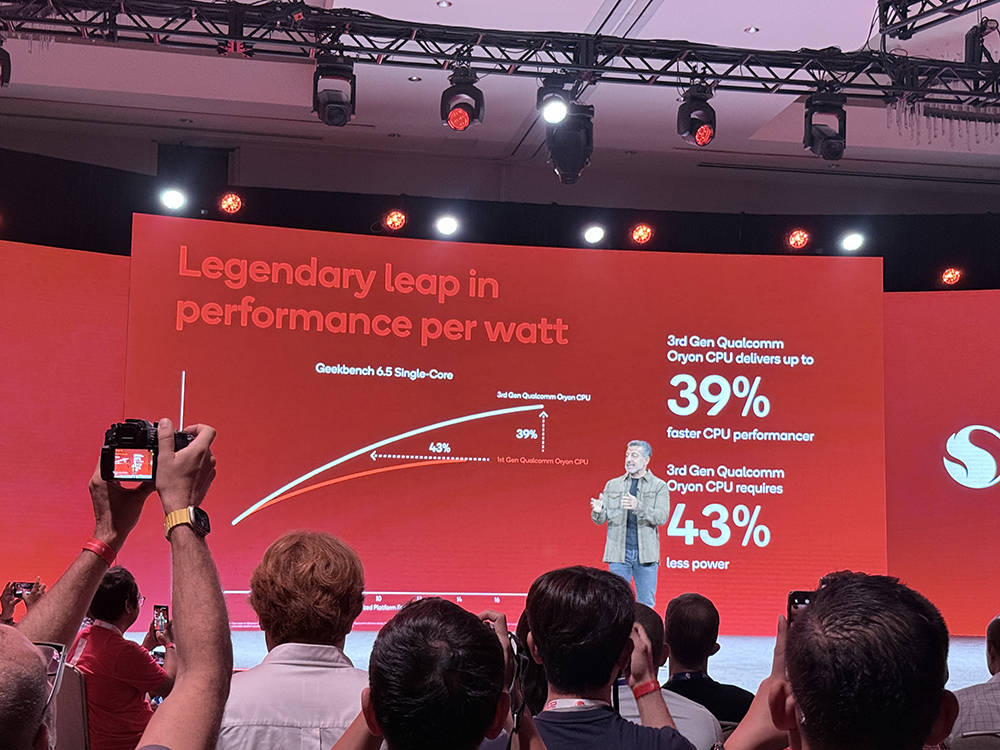 相比第一代,第三代高通Oryon CPU在Geekbench 6.5基准测试上单核性能提升39%,所需功耗降低43%。