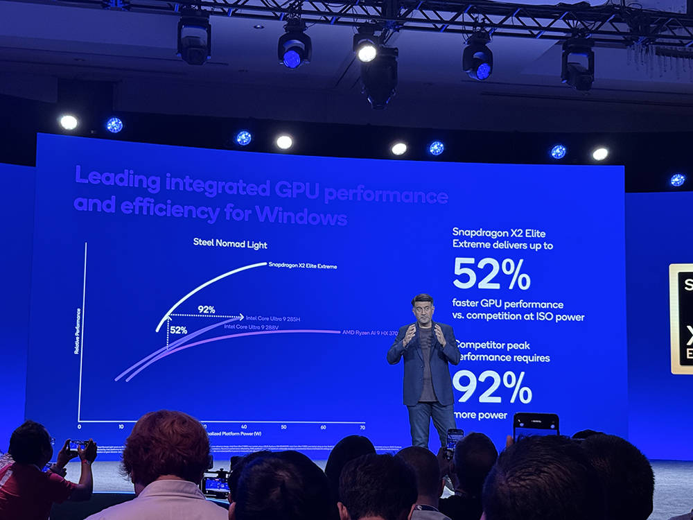骁龙X2 Elite Extreme的Adreno GPU性能比竞品快52%。竞品达到相同性能需要多出92%的功耗。