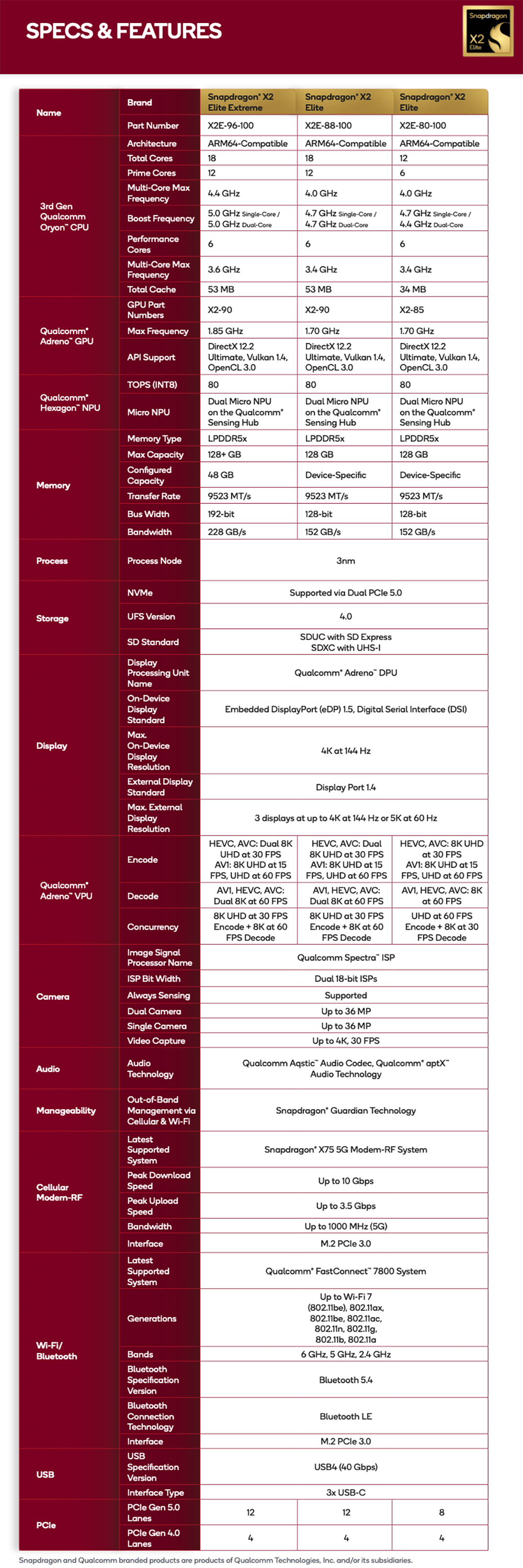 高通称,全新骁龙X2 Elite Extreme和骁龙X2 Elite是目前最快、性能最强大、能效最高的Windows PC处理器,“足以改写行业格局”。
