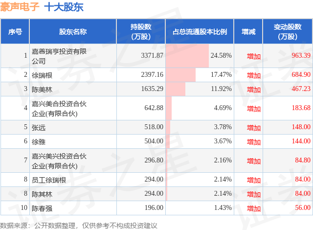 根据豪声电子2025年中报公布的十大股东详情如下: