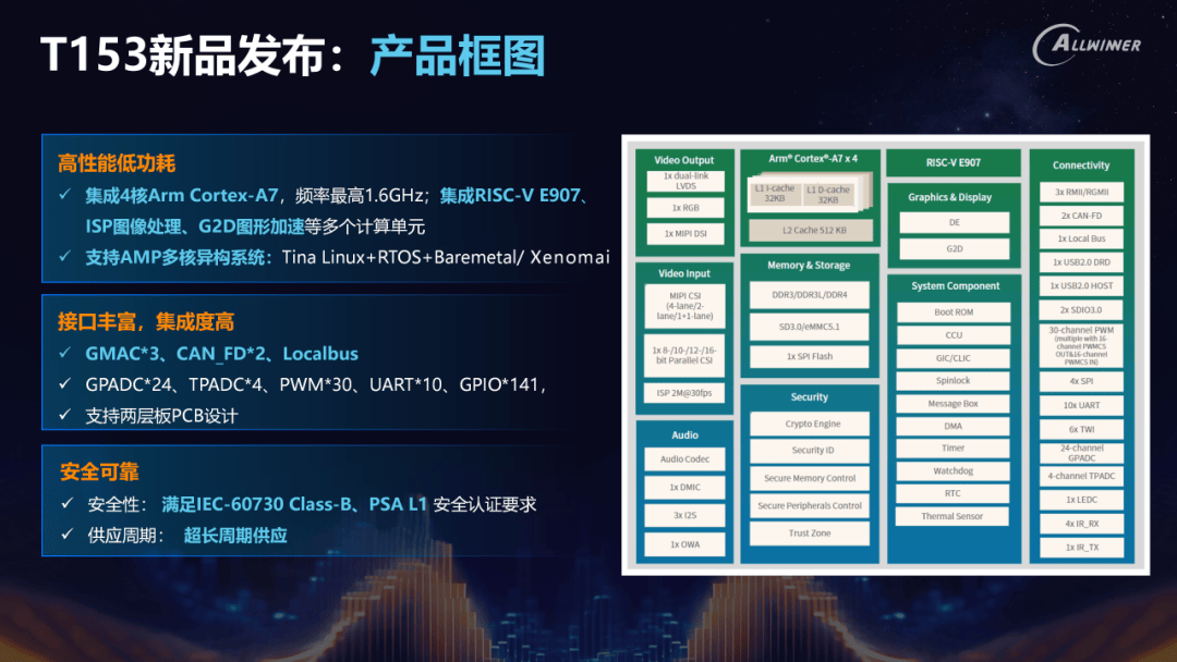 在详细介绍T153之前,全志科技方案运营副总裁朱振华首先强调:“这是一颗物超所值的‘工业芯’”。