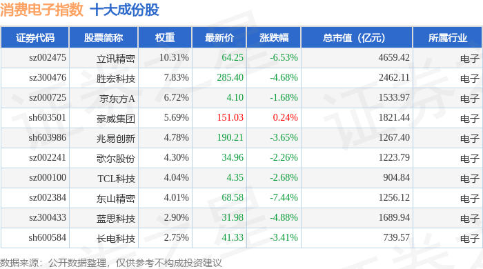 资金流向方面,消费电子(980030)指数成份股当日主力资金净流出合计145.83亿元,游资资金净流入合计30.39亿元,散户资金净流入合计115.43亿元。成份股资金流向详情见下表: