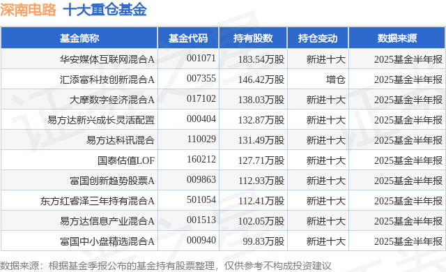 重仓深南电路的前十大公募基金请见下表: