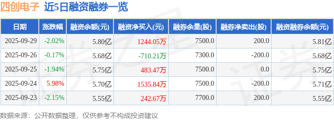 四创电子融资融券信息显示,融资方面,当日融资买入3472.09万元,融资偿还2228.05万元,融资净买入1244.05万元。融券方面,融券卖出200.0股,融券偿还0.0股,融券余量7500.0股,融券余额21.15万元。融资融券余额5.81亿元。
