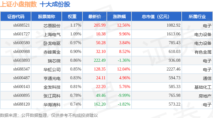 上证小盘(000045)指数十大成份股详情如下: