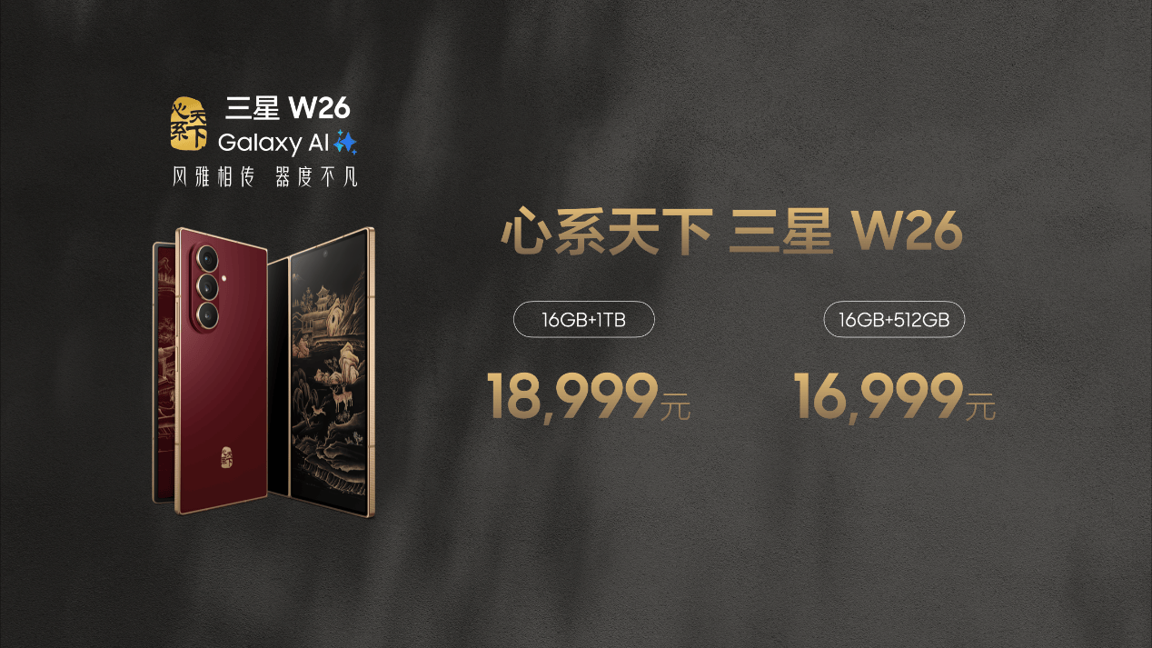 在售价上,心系天下三星W26 提供16GB+512GB和16GB+1TB两个版本,建议零售价分别为16999元、18999元。10月11日17点,其正式在抖音心系天下旗舰店、三星商城、三星京东自营官方旗舰店、天猫三星官方旗舰店、三星手机苏宁自营旗舰店、抖音三星官网旗舰店等线上渠道、线下授权三星门店以及其他授权门店正式开启预约。10月17日全渠道正式开售。(数智前线/周享玥)