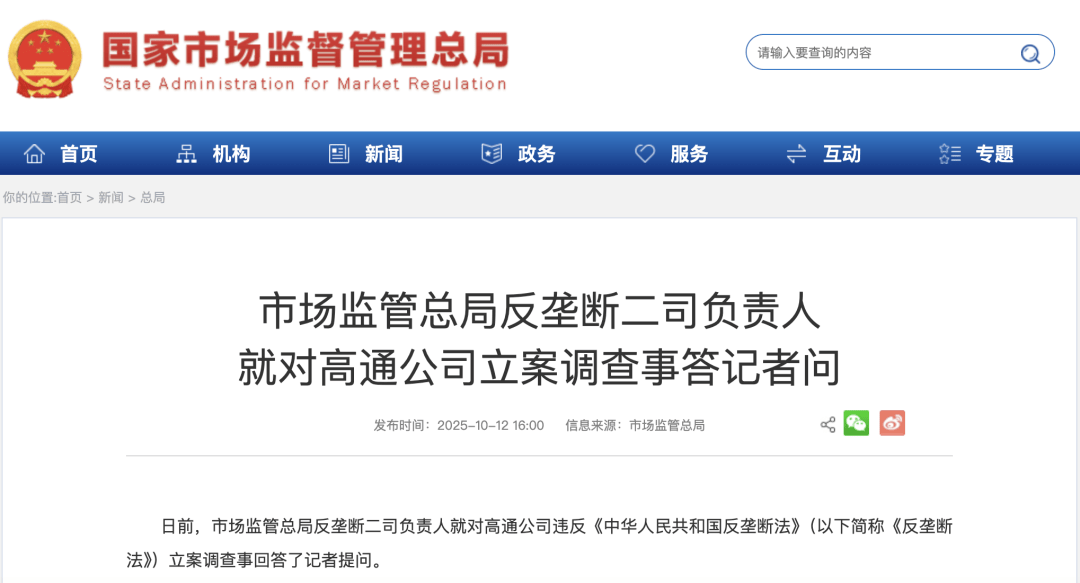 据国家市场监督管理总局今天(10月12日)消息,日前,市场监管总局反垄断二司负责人就对高通公司违反《中华人民共和国反垄断法》(以下简称《反垄断法》)立案调查事回答了记者提问。