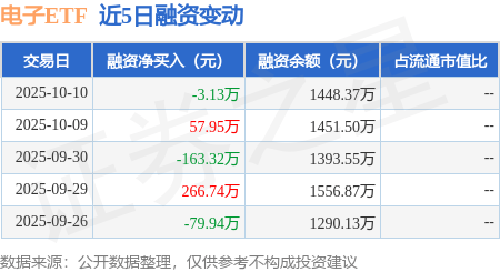 证券之星消息,10月10日,电子ETF(159997)融资买入652.09万元,融资偿还655.22万元,融资净卖出3.13万元,融资余额1448.37万元。