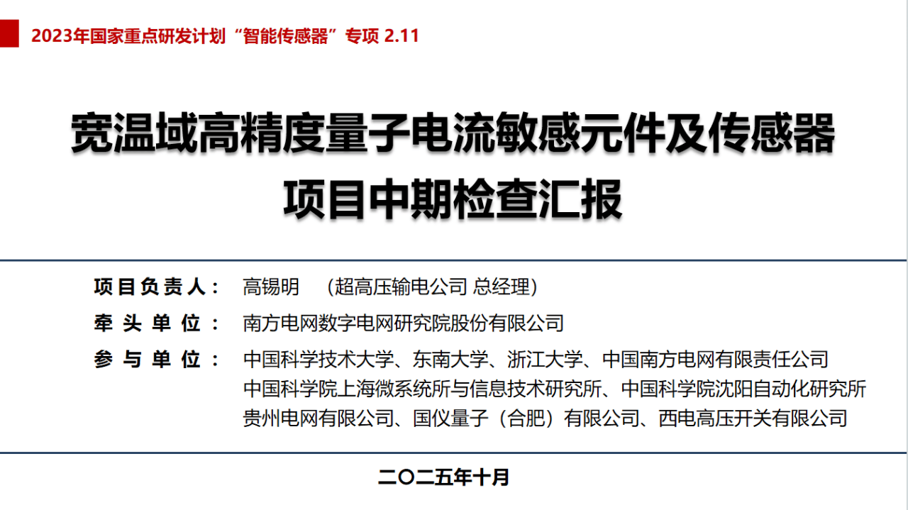 项目负责人高锡明总经理率各课题负责人及研究骨干参会,系统汇报项目整体推进情况,并针对超高压柳州局、贵州乌撒变电站示范应用的量子电流传感器进行连线展示。作为量子科技与电力系统深度融合的关键探索,“宽温域高精度量子电流敏感元件及传感器”项目承载着突破传统传感技术瓶颈、支撑新型电力系统建设的重要使命。