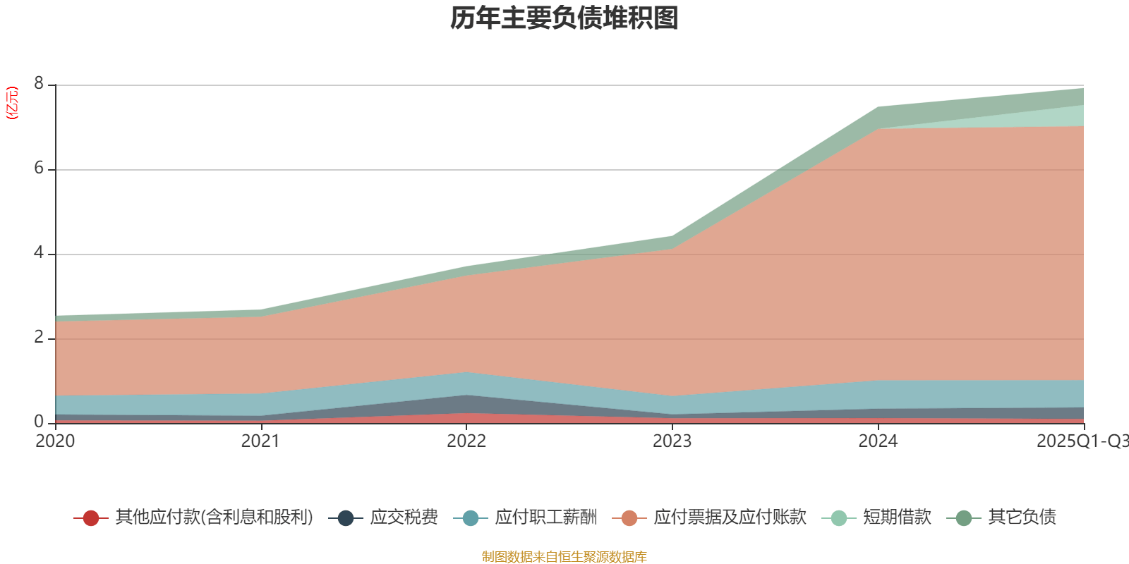 负债重大变化方面,截至2025年三季度末,公司短期借款占公司总资产的1.15%,上年末为0;应付票据及应付账款较上年末增加1.02%,占公司总资产比重下降0.37个百分点;其他流动负债较上年末减少40.75%,占公司总资产比重下降0.36个百分点;应付职工薪酬较上年末减少4.21%,占公司总资产比重下降0.12个百分点。