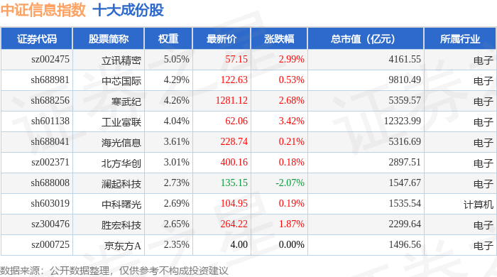 中证信息(399935)指数十大成份股详情如下: