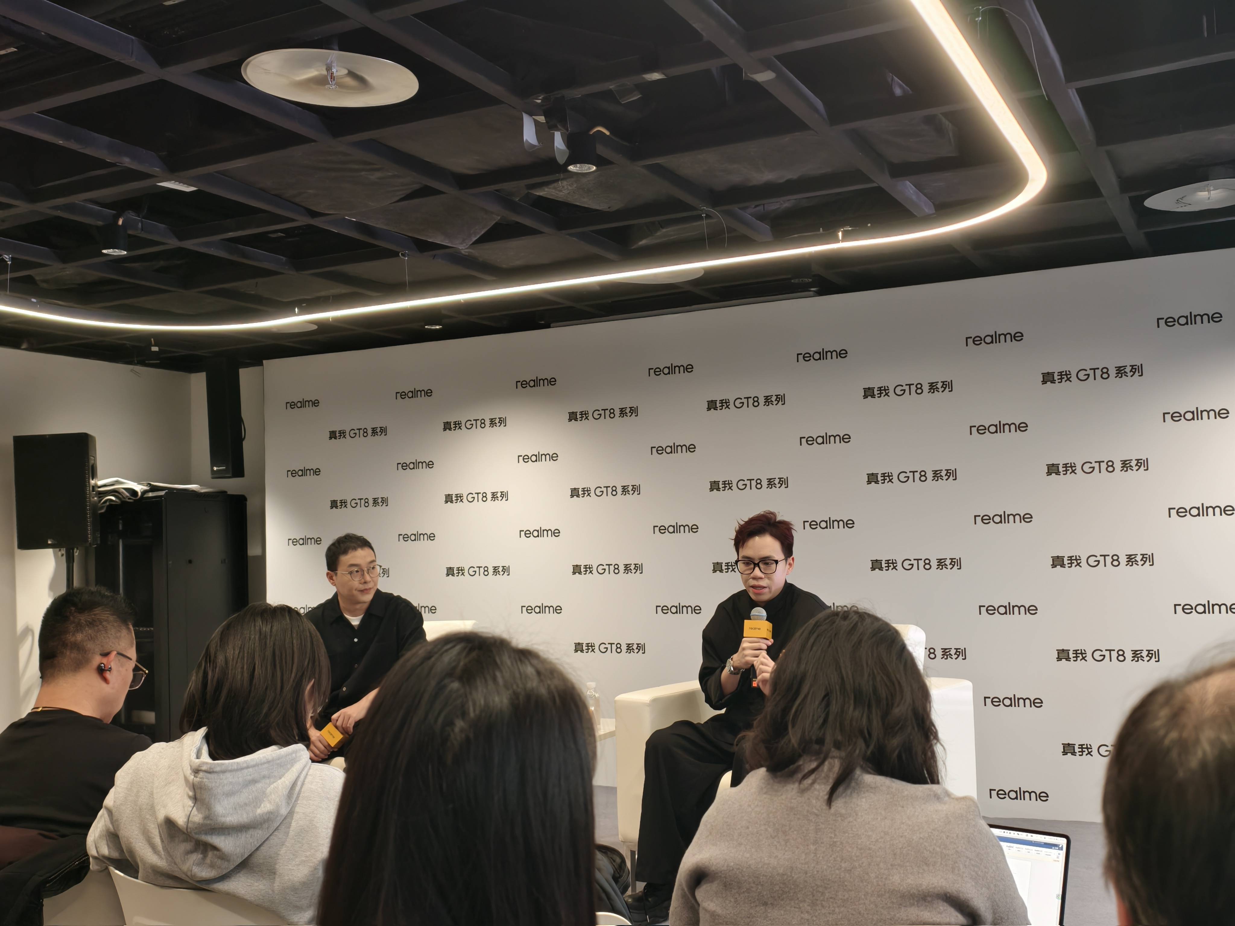 在发布会结束后,雷科技还受邀采访了真我副总裁,中国区总裁徐起和真我手机产品经理周炳讯,他们也分享了关于真我 GT8 系列的心得和理念。