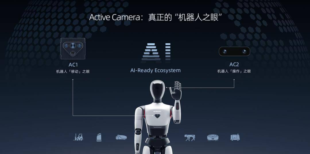 尺寸上,100mmx30mmx45mm(L×H×D)的小巧设计,让 AC2 可以装载在人形机器人脸部、机器狗头部、机械臂末端等狭小空间内。