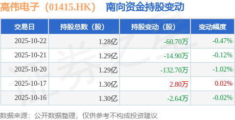 证券之星消息,10月22日南向资金减持60.7万股高伟电子(01415.HK)。近5个交易日中,获南向资金减持的有4天,累计净减持208.14万股。近20个交易日中,获南向资金减持的有11天,累计净减持345.14万股。截至目前,南向资金持有高伟电子(01415.HK)1.28亿股,占公司已发行普通股的14.73%。