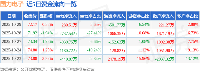 10月29日的资金流向数据方面,主力资金净流入280.51万元,占总成交额3.65%,游资资金净流出501.77万元,占总成交额6.54%,散户资金净流入221.27万元,占总成交额2.88%。