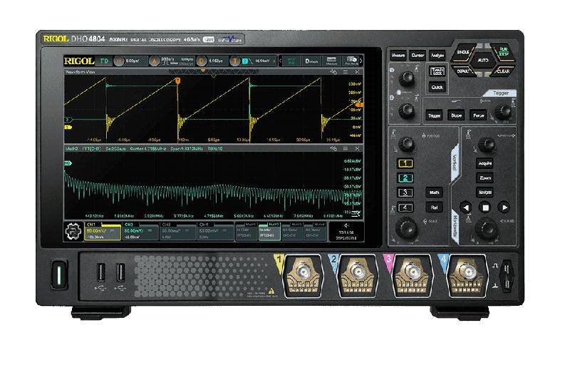 使用DHO4404进行功率测量简便高效:用户只需连接电压与电流探头,设置触发条件与测量参数,示波器即可自动计算并显示结果。其10.1英寸高清触摸屏与波形捕获率高达150万次/秒的UltraAcquire模式,确保复杂信号中的异常波形不被遗漏。数据存储方面,设备支持USB、LAN接口与SD卡扩展,便于导出波形文件或进行离线分析。
