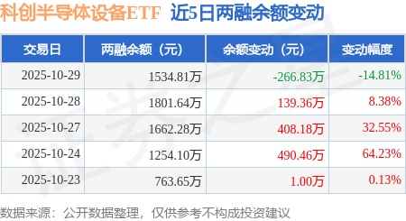 证券之星消息,10月29日,科创半导体设备ETF(588710)融资买入1046.37万元,融资偿还1313.2万元,融资净卖出266.83万元,融资余额1534.81万元。