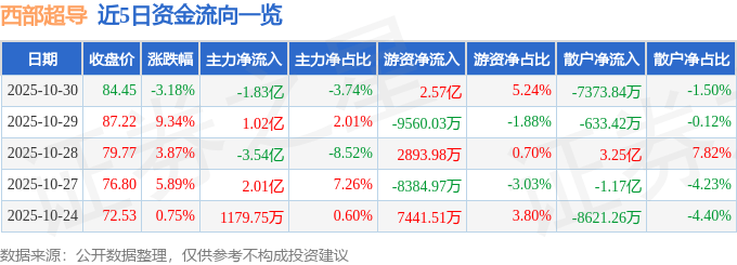 10月30日的资金流向数据方面,主力资金净流出1.83亿元,占总成交额3.74%,游资资金净流入2.57亿元,占总成交额5.24%,散户资金净流出7373.84万元,占总成交额1.5%。