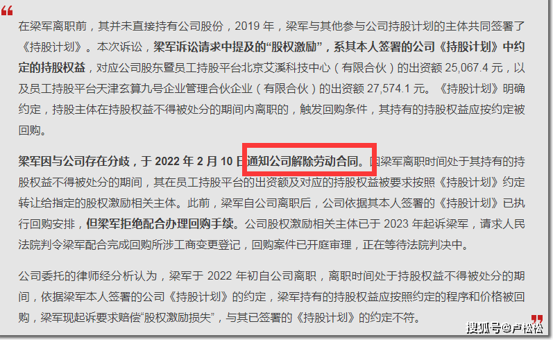 寒武纪公司公告写得很明确:梁军因与公司存在分歧,于 2022 年 2 月 10 日通知公司解除劳动合同。