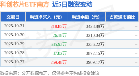 证券之星消息,10月31日,科创芯片ETF南方(588890)融资买入745.32万元,融资偿还526.47万元,融资净买入218.85万元,融资余额3428.89万元,近20个交易日中有11个交易日出现融资净买入。