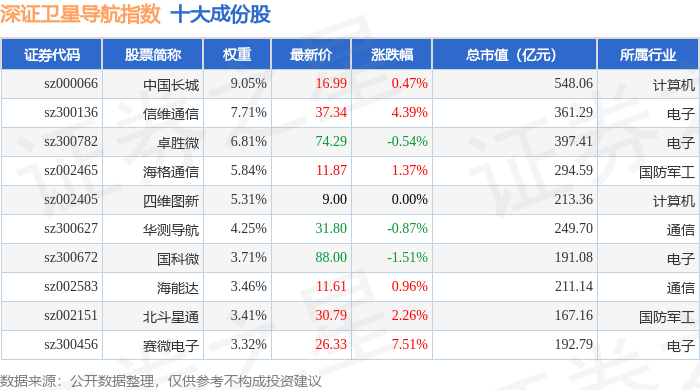 证券之星消息,11月3日,深证卫星导航(970050)指数报收于3249.24点,涨1.21%,成交189.35亿元,换手率3.56%。当日该指数成份股中,上涨的有32家,赛微电子以7.51%的涨幅领涨,下跌的有8家,旋极信息以1.63%的跌幅领跌。