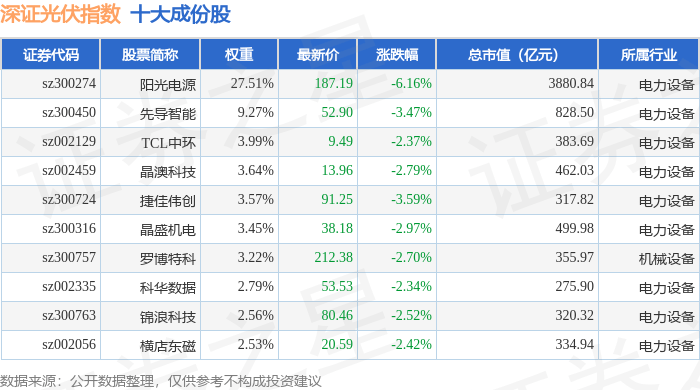 资金流向方面,深证光伏(970035)指数成份股当日主力资金净流出合计31.22亿元,游资资金净流入合计11.39亿元,散户资金净流入合计19.83亿元。成份股资金流向详情见下表: