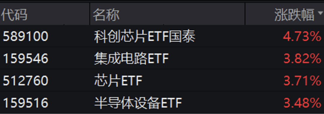 11月6日算力板块反弹,国产算力更为强势,科创芯片ETF收涨4.73%,集成电路ETF收涨3.82%,芯片ETF收涨3.71%,半导体设备ETF收涨3.48%。