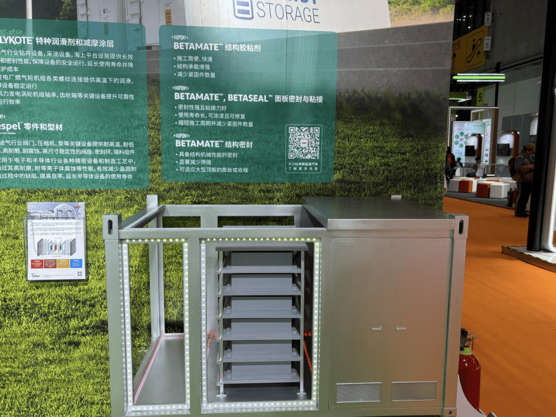 据工作人员介绍,杜邦BETAMATE™结构胶已获得国际头部储能系统制造商的认可,被应用于集装箱式储能的顶盖与侧板粘接。