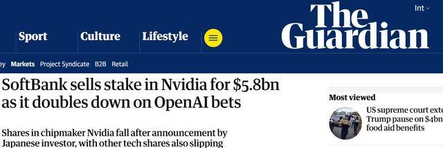 【环球网科技综合报道】11月12日消息,据外媒《卫报》报道称,软银集团于最新财报季宣布,已于10月出售所持英伟达股份,回笼资金58亿美元,并同步加码对OpenAI的超300亿美元投资。