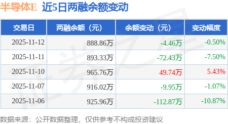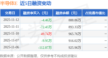 证券之星消息,11月12日,半导体E(159558)融资买入408.86万元,融资偿还413.33万元,融资净卖出4.46万元,融资余额888.86万元。