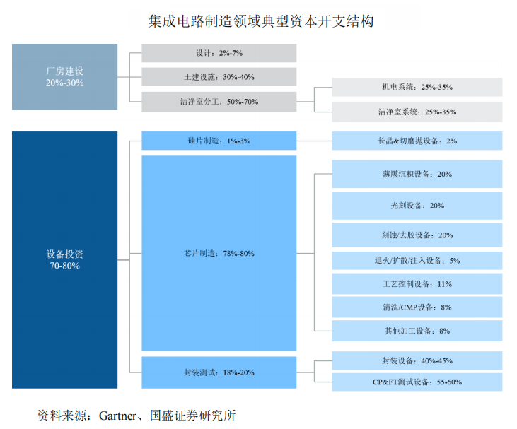 半导体行业素有“一代设备,一代工艺,一代产品”的经验,半导体设备要超前半导体产品制造开发新一代产品,半导体产品要超前电子系统开发新一代工艺,因此半导体设备行业是半导体制造的基石,支撑起了整个电子信息产业,是半导体行业的基础和核心。数据显示,一条半导体生产线中设备投资约占总投资规模的75-80%,随着消费电子、PC等下游市场景气度的提升拉动,全球半导体需求持续整体向好,半导体设备市场也水涨船高。