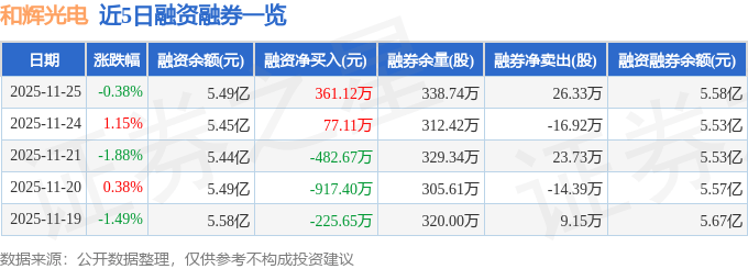 和辉光电融资融券信息显示,融资方面,当日融资买入1062.11万元,融资偿还700.99万元,融资净买入361.12万元。融券方面,融券卖出29.11万股,融券偿还2.79万股,融券余量338.74万股,融券余额890.89万元。融资融券余额5.58亿元。