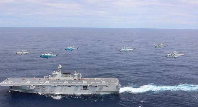 辽宁舰编队正在日本以东演训;山东舰可能已进入南海;两艘075型两栖攻击舰分别现身南海和巴布亚新几内亚附近,配合驱逐舰、护卫舰展开战备训练;