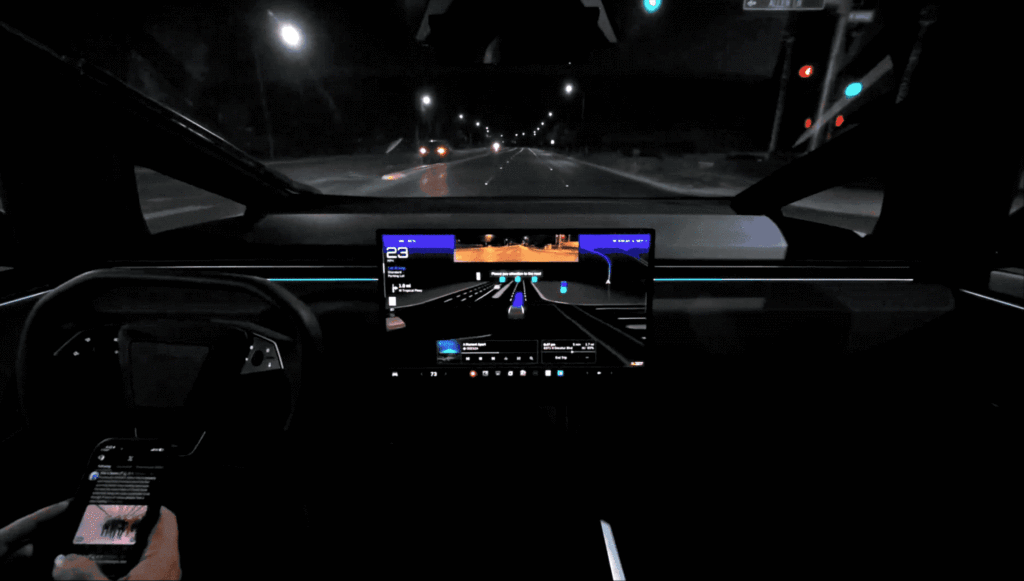 ▲驾驶者边开车边刷手机FSD并未阻止其操作